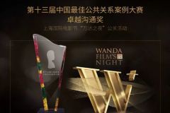2017年11月24日,由萬達文化產(chǎn)業(yè)集團和萬達影視主辦、萬達傳媒全程承辦的上海國際電影節(jié)“萬達之夜”案例榮膺公共關(guān)系領(lǐng)域多項大獎。中國國際公共關(guān)系協(xié)會授予“萬達之夜”全場唯一