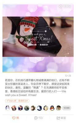 [作者:狄曠]每逢節(jié)日,是各大品牌必爭的營銷爆發(fā)期。而這個圣誕節(jié)中,香港航空竟然成為了網(wǎng)友口中的“別人家的航空公司”,而且這“別人家的航空公司”還把旅客和網(wǎng)友都“玩”哭了,香港航空在圣誕節(jié)都做了什么?