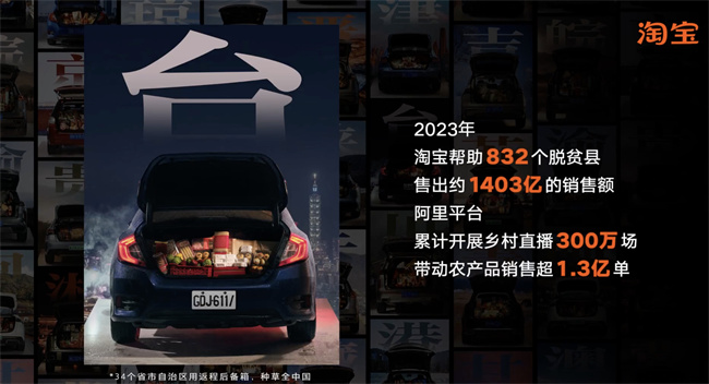 公益助農(nóng)不在一朝一夕,企業(yè)品牌作為其中一環(huán)重要力量,也一直備受關(guān)注。在「家鄉(xiāng)寶貝請上車」品牌公益片的末尾顯示:“2023年,淘寶幫助832個(gè)脫貧縣,售出約1403億銷售額,阿里平臺累計(jì)開展鄉(xiāng)村直播300萬場,帶動(dòng)農(nóng)產(chǎn)品銷售超1.3單”,讓家鄉(xiāng)寶貝也搭上電商發(fā)展的時(shí)代快車,由此,淘寶品牌的鄉(xiāng)村振興公益線布局戰(zhàn)略可見一斑。