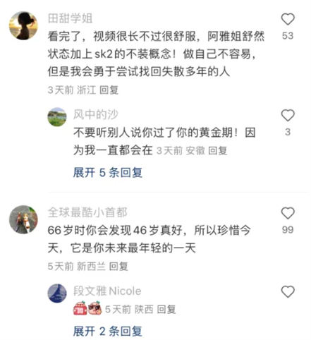 “26歲的我年輕閃耀,但46歲的我只做自己”“從25歲到35歲,不再為別人的期望而活,而是為了自己的熱愛奮斗”“擺脫年齡焦慮以后,我自由了”......在一條條筆記中,我們看到越來越多女性隨著年紀的增長,如何從懵懂青澀轉變成勇敢自信的樣子。
