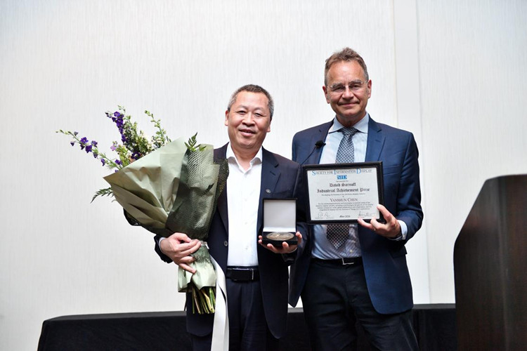 David Sarnoff產(chǎn)業(yè)成就獎(jiǎng)設(shè)立于2018年,每年僅授予全球顯示產(chǎn)業(yè)的一位杰出領(lǐng)袖,以表彰其卓越領(lǐng)導(dǎo)力和長(zhǎng)遠(yuǎn)影響。陳炎順董事長(zhǎng)在發(fā)表獲獎(jiǎng)致辭時(shí)表示,感謝SID榮譽(yù)與獎(jiǎng)項(xiàng)委員會(huì)授予的此項(xiàng)榮譽(yù),并特別感謝業(yè)界伙伴的支持以及全體京東方人為此刻榮譽(yù)的不懈努力!榮譽(yù)屬于全體京東方人!五年來(lái),京東方始終保持著創(chuàng)新不斷的步伐,特別是我們深刻的洞察半導(dǎo)體顯示和相關(guān)技術(shù),比如物聯(lián)網(wǎng)技術(shù)、數(shù)字技術(shù)、人工智能技術(shù),尤其針對(duì)目前快速發(fā)展的IOT技術(shù)的融合趨勢(shì),創(chuàng)新性提出“屏之物聯(lián)”的發(fā)展戰(zhàn)略,為半導(dǎo)體顯示產(chǎn)業(yè)發(fā)展打開(kāi)廣闊的空間和無(wú)限的可能,也為科技企業(yè)的戰(zhàn)略升維提供了思維邏輯和方法論!