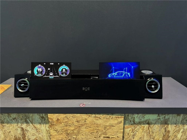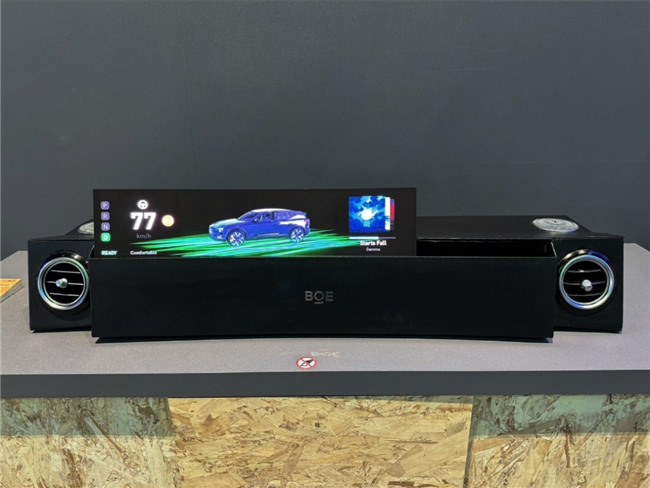 京東方(BOE)基于車載應(yīng)用場景,設(shè)計展出P0.3 Micro LED 無邊框曲面滑動拼接原型機,采用LTPS像素驅(qū)動取代Micro IC像素驅(qū)動,有效節(jié)約像素的物理空間,同時搭配厚Cu工藝及BOE獨有的表面封裝方案,使顯示屏具備超高亮度和超高對比度,為駕駛員呈現(xiàn)更加清晰、逼真的圖像效果,確保其能夠流暢地獲取駕駛信息,提高駕駛安全性。