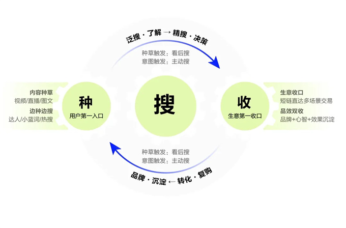 通過(guò)搜索,將種草與拔草兩個(gè)行為更短鏈路的連接起來(lái),同步進(jìn)行,這就是新搜索的一體化邏輯。