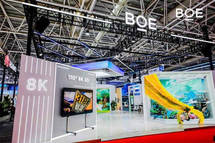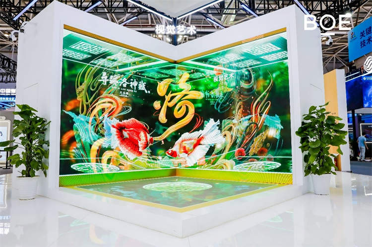 展會(huì)現(xiàn)場,BOE(京東方)“精靈魔盒”XR沉浸體驗(yàn)空間吸引觀眾紛紛駐足體驗(yàn),該空間由左右立屏+地屏搭建而成,觀眾可進(jìn)入XR畫面與虛擬主體實(shí)時(shí)互動(dòng),高達(dá)7680Hz的屏幕燈點(diǎn)刷新率及裸眼3D實(shí)時(shí)視效讓觀眾立時(shí)獲得“打破次元壁”的新奇體驗(yàn)和視覺奇觀。百萬級(jí)超高對(duì)比度的Mini LED巨幅裸眼3D轉(zhuǎn)角大屏上,鳳舞九天、虎嘯山林的裸眼3D畫面仿佛躍屏而出;全球首款110英寸8K超高清裸眼3D大屏呈現(xiàn)Retina級(jí)分辨率、超大視角的震撼3D畫面;105英寸萬境屏具有5120×2160 超高顯示分辨率,自帶多種交互演示模式,支持多類場景現(xiàn)場互動(dòng)宣傳,可廣泛應(yīng)用于多種商業(yè)展陳場景。