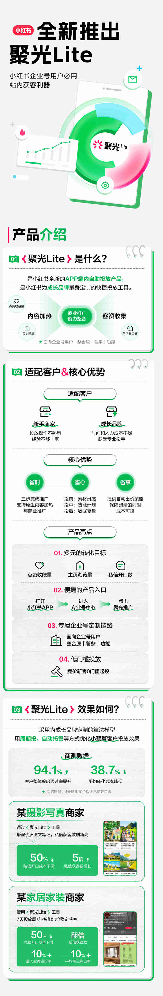 「聚光 Lite」的推出,為新手商家及成長(zhǎng)品牌提供更加便捷高效的投放方式,幫助企業(yè)號(hào)用在小紅書平臺(tái)上快速成長(zhǎng),實(shí)現(xiàn)品牌的內(nèi)容曝光和獲客線索的提升。那么,什么是「聚光ite」?下文帶你了解更多產(chǎn)品亮點(diǎn)及使用指南!
