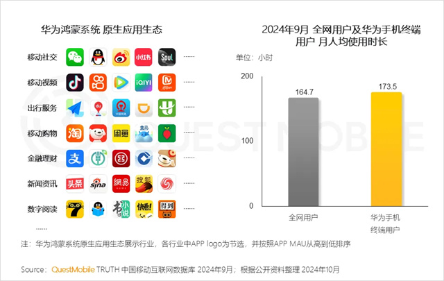 但根據(jù)QuestMobile發(fā)布的《2024中國(guó)互聯(lián)網(wǎng)核心趨勢(shì)報(bào)告》顯示,目前,華為手機(jī)終端用戶月人均使用時(shí)長(zhǎng)高于全網(wǎng),其用戶對(duì)互聯(lián)網(wǎng)使用粘性更強(qiáng)。