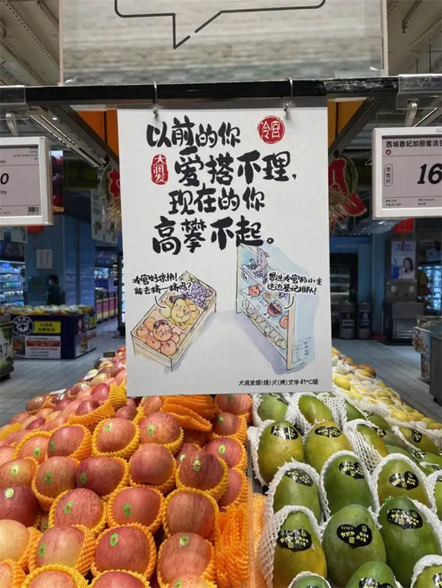 如果你還有印象的話,之前因?yàn)椤安耸袌?chǎng)文學(xué)”而火出圈的大潤(rùn)發(fā)文案,也是基于生活與工作的雙重場(chǎng)景,結(jié)合菜品的特點(diǎn)反差感,讓打工人深深共鳴。