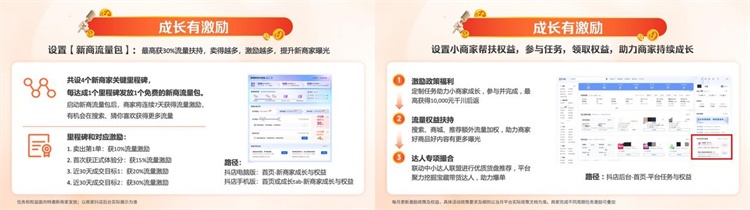 之后的成長(zhǎng)階段,商家每完成一個(gè)里程碑,就可以獲得一個(gè)免費(fèi)的“新商流量包“。“小商家?guī)头龌稹弊龅搅苏嬲睦鋯⒂蟹龀?成長(zhǎng)有激勵(lì),即使新手小白也能玩轉(zhuǎn)運(yùn)營(yíng)。