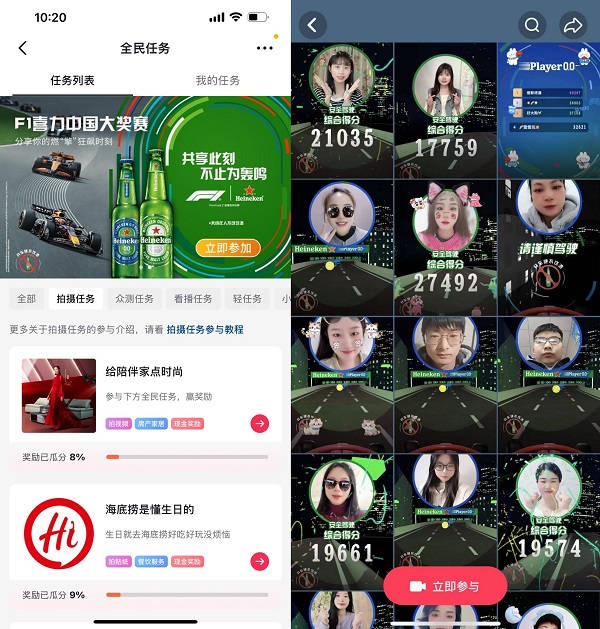 若說明星與話題是吸引海量關(guān)注的“鉤子”,那么喜力打造的F1競速小游戲「Player0.0」則是讓用戶從圍觀者變?yōu)閰⑴c者的“利器”。游戲以頭部動作操控賽車、撞擊金幣解鎖獎勵為核心玩法,將F1的極速體驗與抖音的技術(shù)深度融合——用戶無需專業(yè)設(shè)備,即可化身“虛擬車手”,在復刻賽道的星形終點門前沖擊排行榜。值得關(guān)注的是,喜力為此次活動參與者提供了極具吸引力的獎勵機制,壕氣贈出真實F1觀賽門票,用戶參與即有機會贏取。游戲玩法巧妙結(jié)合抖音全民任務機制,憑借強互動性與競技趣味性,上線首周3天即吸引超2萬硬核車迷用戶參與。