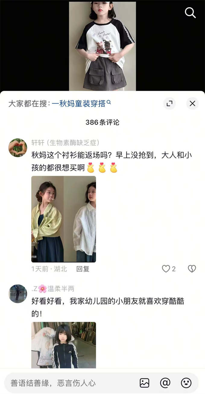 在好內(nèi)容引發(fā)搜索興趣后,商家布局小藍詞資源,在評論區(qū)吸頂詞、底BAR植入“品牌詞、產(chǎn)品詞”等相關(guān)搜索詞,持續(xù)激發(fā)用戶搜索,將更多A1、A2人群轉(zhuǎn)化為A3、A4人群。例如,童裝品牌麥麥秋主理人在店鋪直播前發(fā)布系列種草視頻,觸發(fā)“一秋媽童裝穿搭”小藍詞,帶動品牌搜索提升超30%。