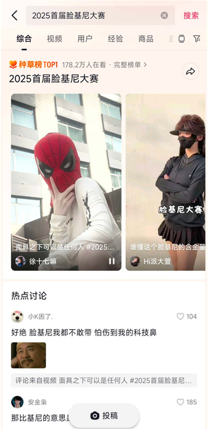 活動中,#2025首屆臉基尼大賽火爆出圈,話題播放次數(shù)突破2500萬。面對多元熱烈的各種參賽“臉基尼”投稿,平臺以創(chuàng)意短視頻集錦形式,進行“首屆臉基尼頒獎大會”。風(fēng)格各異的臉基尼投稿視頻,加深用戶對于“防曬帶臉基尼,確實很好曬”的感知;同時,助力商品名含“臉基尼”的商品,日均支付同比爆發(fā)154%。