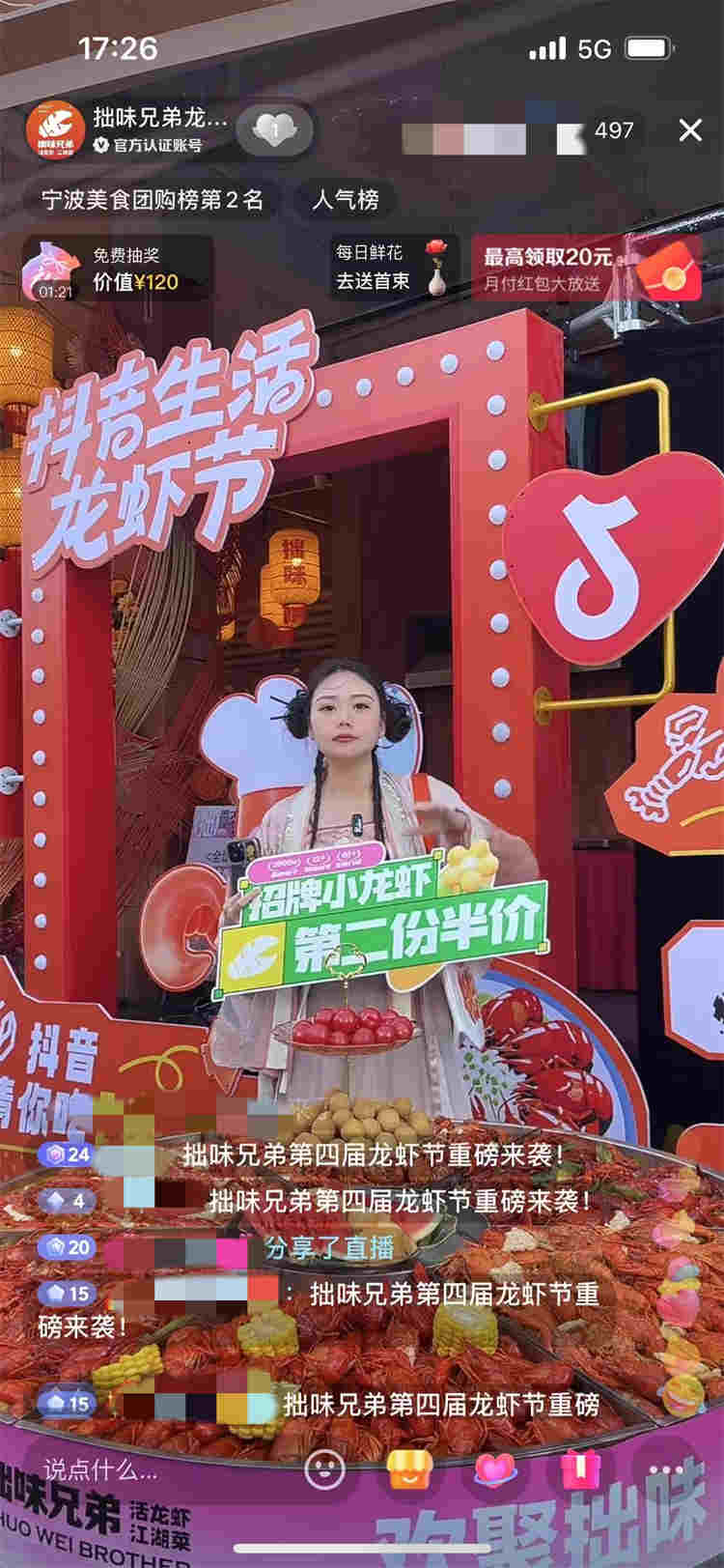 在貨盤上,利用源頭養(yǎng)殖基地自主供貨的優(yōu)勢(shì),拙味兄弟主推9斤4-6人餐套餐,68元代100元代金券和“買三送一”的靈活定價(jià),讓家庭客群擠滿門店;在場(chǎng)景上,拙味兄弟“三條腿走路”——短視頻、自播、達(dá)播均覆蓋,活動(dòng)期支付GMV超1400萬(wàn)。此外,基于與抖音生活龍蝦節(jié)的深度合作,拙味兄弟獲得了多點(diǎn)位廣告投放、優(yōu)質(zhì)達(dá)人、物料包店等優(yōu)質(zhì)資源,得以快速提升品牌在全網(wǎng)的聲量?!斑@蝦從池塘到餐桌只要6小時(shí),鮮得能咬出汁水。”不少消費(fèi)者在直播間分享了自己的真實(shí)體驗(yàn)。