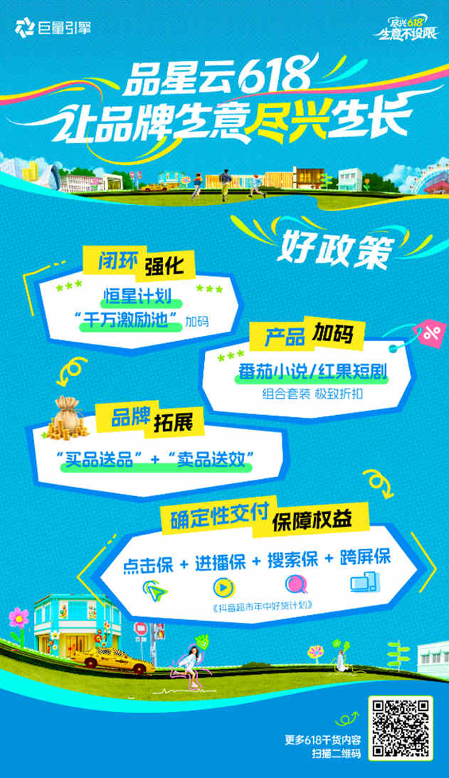 618戰(zhàn)役已進(jìn)入倒計時,品牌增長已經(jīng)進(jìn)入“精準(zhǔn)作戰(zhàn)”的關(guān)鍵階段。巨量引擎以抖音生態(tài)為底座,整合「品牌廣告+巨量星圖+巨量云圖」核心產(chǎn)品營銷能力,以 “好內(nèi)容共鳴用戶心智、好產(chǎn)品打通轉(zhuǎn)化鏈路、好政策激活生態(tài)勢能” 三大維度,助力品牌生意在 618 的激烈競爭中構(gòu)建 “短期爆發(fā)有力度、長效經(jīng)營有厚度” 的增長壁壘,更以生態(tài)級協(xié)同能力引領(lǐng)多行業(yè)品牌突破增長邊界,實現(xiàn)品牌價值的持續(xù)躍升。
