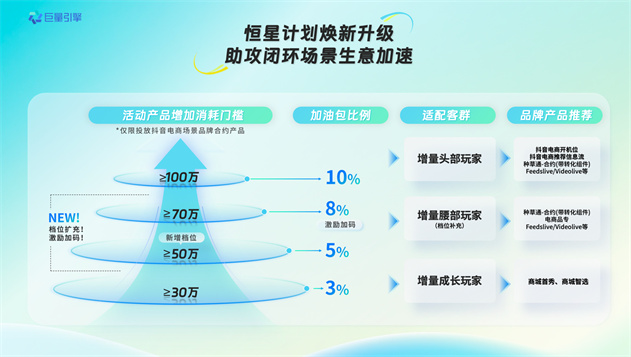 品牌廣告以全鏈路閉環(huán)提效與全維度資源加碼為核心策略,推出恒星計劃 “千萬激勵池” ,今年618做進(jìn)一步加碼,單客戶最高可以達(dá)到20萬的封頂激勵;同時鼓勵中腰部商家,增設(shè)了同比增長50萬的激勵檔位。針對第二季度品牌廣告整體有增量投入的品牌,給予“買品送品、賣品送效” 季度政策,原點位配送最高享 130%、效果返貨最高 10%。在重點產(chǎn)品如種草通競價上,也額外增加了單產(chǎn)品激勵。整套組合以真金白銀的補貼,為品牌商家618生意增長全面護(hù)航。