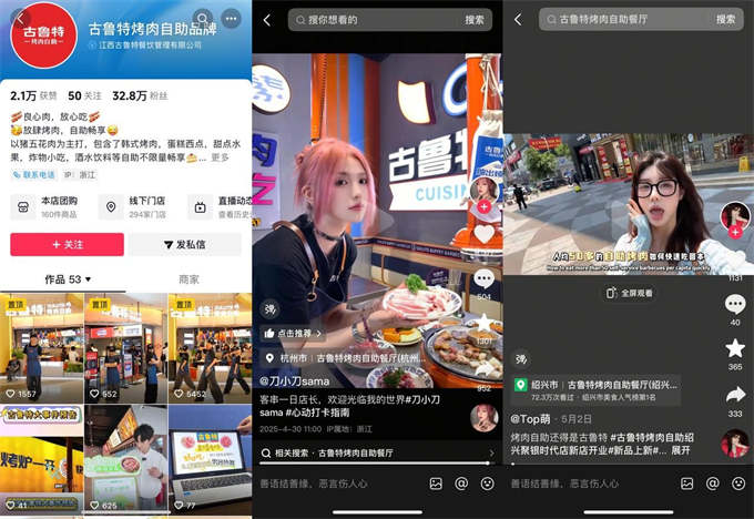 以“曝光種草+區(qū)域滲透”為核心策略,古魯特烤肉自助以抖音生活服務(wù)平臺為依托,聯(lián)動達(dá)人打造聲量高峰,精準(zhǔn)觸達(dá)門店周邊客群,提升古魯特烤肉自助品牌知名度的同時,實(shí)現(xiàn)了區(qū)域聲量爆發(fā)與周邊客流轉(zhuǎn)化的協(xié)同增長。