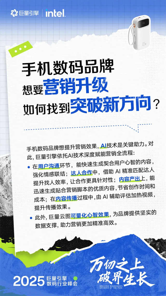 9月3日,巨量引擎聯(lián)合英特爾舉辦“萬仞之上 破界生長”數(shù)碼行業(yè)峰會。此次峰會不僅邀請了眾多手機數(shù)碼領域頭部品牌代表、抖音創(chuàng)作者參會,還匯聚了36氪、第一財經(jīng)商業(yè)數(shù)據(jù)中心(CBNData)等行業(yè)權威機構(gòu),各方圍繞心智營銷、AI技術提效等關鍵議題展開深度對話?,F(xiàn)場與會嘉賓通過趨勢解碼、方法論解讀與實戰(zhàn)案例分享,為手機數(shù)碼品牌提供了從認知構(gòu)建到技術提效的全鏈路解決方案,助力品牌在行業(yè)新周期中突破增長邊界,打造核心競爭力。