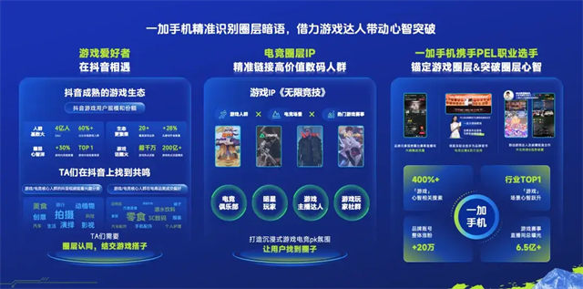 以一加手機的游戲IP營銷為例,品牌通過AI洞察抖音游戲用戶行為數(shù)據(jù),鎖定“游戲場景性能需求”后,聯(lián)動抖音游戲IP、PEL職業(yè)聯(lián)賽換機儀式、電競直播等多方,開啟主題直播、娛播合作,形成對游戲玩家的有效觸達、高頻互動。由此,一加手機不僅實現(xiàn)“游戲”心智相關搜索提升400%、場景心智躍居行業(yè)TOP1,品牌賬號漲粉20萬+,更從硬核游戲圈層輻射至運動、攝影、舞蹈等泛興趣圈層,帶動GMV顯著增長。