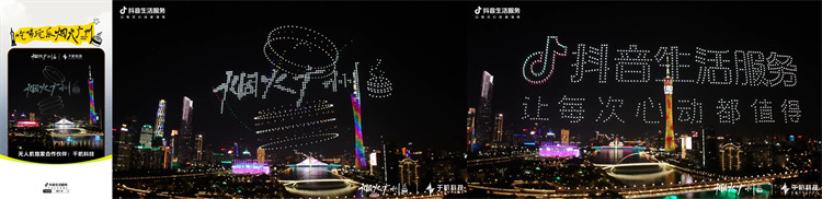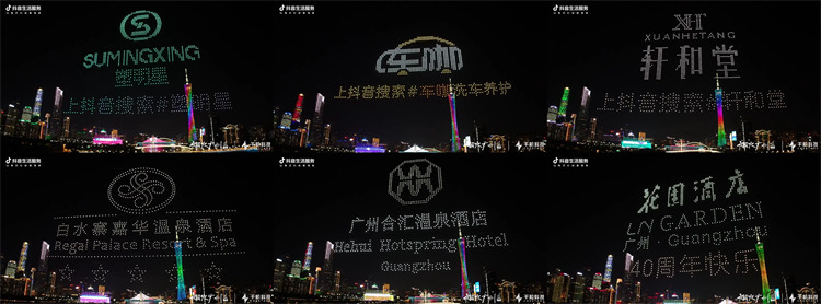 這場無人機(jī)表演,更像一場盛大邀約,依托抖音生活服務(wù)「煙火廣州」組團(tuán)帶領(lǐng)塑明星、車咖、軒和堂、廣州合匯溫泉酒店、花園酒店、白水寨嘉華溫泉酒店等眾多商家閃耀廣州中軸線。這些商家涵蓋生活服務(wù)、休閑度假、家居、母嬰等多個領(lǐng)域,借助「煙火廣州」與千機(jī)科技打造的熱度,讓更多人感受廣州多元業(yè)態(tài)的獨特魅力。