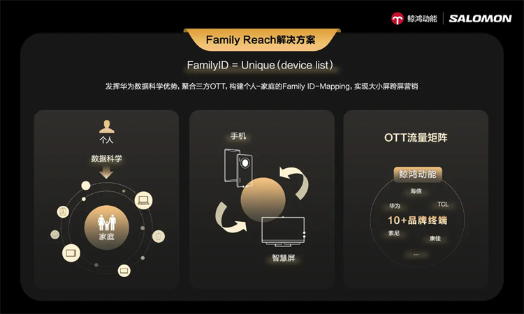 此前,鯨鴻動能已推出覆蓋運(yùn)動健康、出行、睡眠等場景的廣告解決方案,作為全場景智慧營銷范式又一進(jìn)展,“Family Reach”的推出,旨在破解家庭營銷中大小屏觸達(dá)割裂、大屏難以精準(zhǔn)衡量投放效果,以及無法圍繞家庭決策單元進(jìn)行連貫溝通等核心痛點(diǎn),為品牌帶來更加高效、廣泛、深入的營銷新解法。