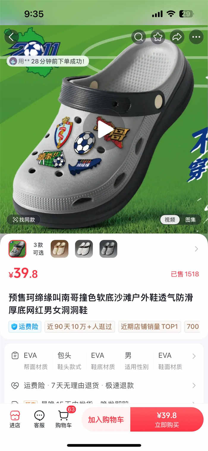例如,今年6月初,隨著蘇超「走紅」,其南通青訓隊冠名贊助商的珂締緣,因3年前一條相關短視頻意外翻紅。該商家一邊結合供應鏈優(yōu)勢推出「叫南哥」主題拖鞋、球衣等周邊產品,一邊持續(xù)發(fā)布短視頻+開啟主題直播,成功承接并延續(xù)熱點,搜索支付GMV貢獻占比飆升超58%。