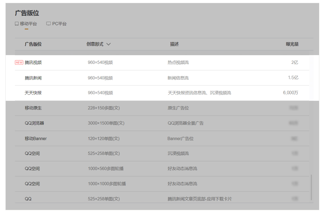 騰訊新聞、騰訊視頻、天天快報視頻廣告均支持自助競價購買,登陸e.qq.com,廣告主在“廣告版位”選擇環(huán)節(jié)選擇 騰訊新聞、騰訊視頻、天天快報視頻規(guī)格,即可投放至相應(yīng)的信息流位置。