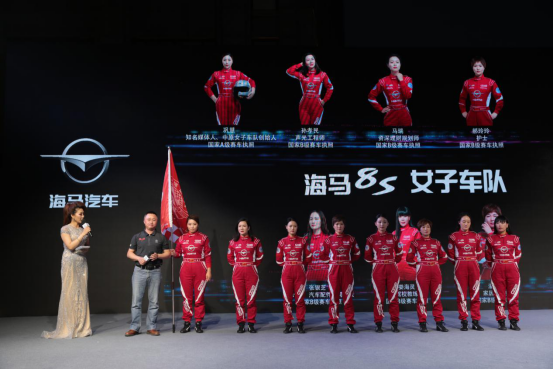 此外,活動(dòng)現(xiàn)場(chǎng)還出現(xiàn)了一道獨(dú)特的靚麗風(fēng)景線——海馬8S女子車隊(duì)。8位美女車手身著賽車服走上舞臺(tái),英姿颯爽活力飛揚(yáng)。