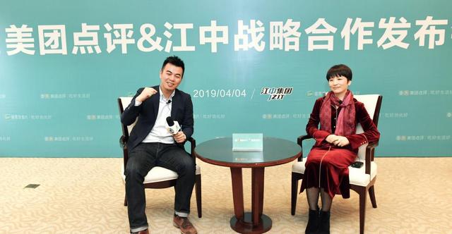 美團(tuán)點(diǎn)評(píng)戰(zhàn)略客戶發(fā)展部總經(jīng)理陳瑞杰先生與華潤(rùn)江中總經(jīng)理盧小青女士接受媒體采訪