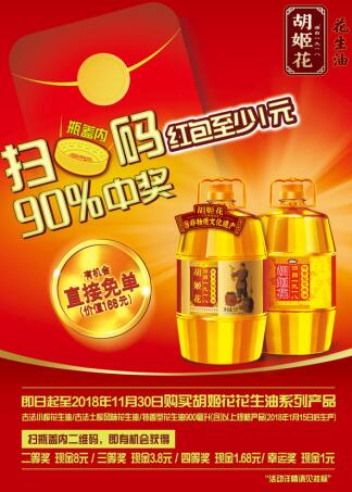 即日起,胡姬花更有“掃碼贏紅包”活動(dòng),開(kāi)蓋掃碼,百分百中獎(jiǎng)贏現(xiàn)金紅包,與胡姬花一起傳承千年魯菜風(fēng)味。