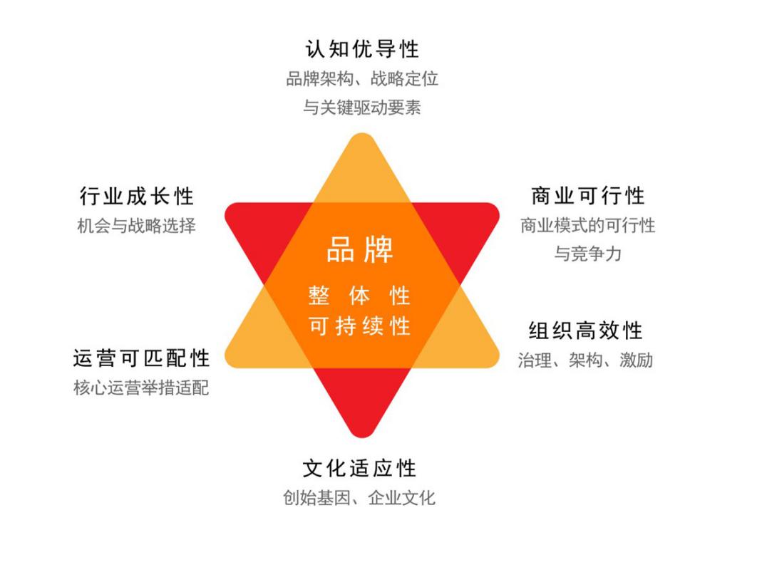 “品牌全局觀”認(rèn)為,一個(gè)長(zhǎng)期成功的品牌需要具備的條件事關(guān)企業(yè)運(yùn)作的方方面面,可歸納為陰陽兩個(gè)面共六個(gè)角度,包括看得見的認(rèn)知優(yōu)異性、運(yùn)營(yíng)匹配性、組織高效性三個(gè)角度,以及看不見的行業(yè)成長(zhǎng)性、商業(yè)可行性、文化的適應(yīng)性三個(gè)角度。運(yùn)作一個(gè)成功的品牌就是對(duì)以上六大要素科學(xué)駕馭、調(diào)適得當(dāng)?shù)慕Y(jié)果。因此,劉總提出一個(gè)鮮明的觀點(diǎn):做企業(yè)的最高級(jí)境界就是做品牌!