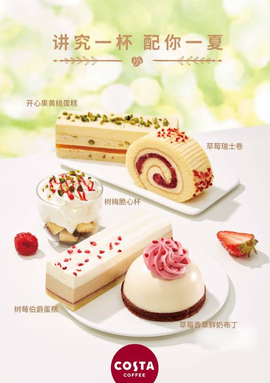 COSTA還在這個(gè)夏天將推出多種風(fēng)味的飲品,配以草莓瑞士卷、樹(shù)莓脆心杯、樹(shù)莓伯爵蛋糕和草莓香草風(fēng)味蛋糕等多款夏日新品,打造一個(gè)全新的COSTA夏日盛宴。