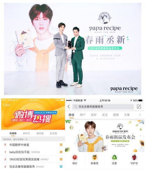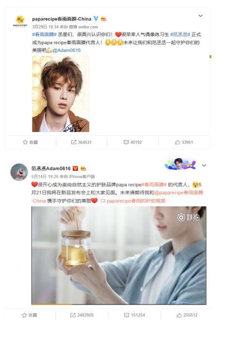 2018年,以90、00后為代表的年輕“種草一代”正成長為時尚消費的風(fēng)向標(biāo)和新主力,消費人群的高度年輕化顯然催生出一個更大的市場空間,如何卡住年輕一代的消費理念和偏好,已經(jīng)成為商家和品牌面臨的重要課題。這其中,率先出手牽手范丞丞的papa recipe春雨面膜顯然已經(jīng)找到了一條流量通道。