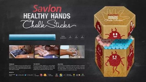 當觀察到這些后,知名衛(wèi)生用品生產商ITC SAVLON聯(lián)合OGILVY & MATHER MUMBAI,想出了把粉筆和香皂結合的創(chuàng)意,他們造出了一款“護手粉筆”(Savlon Healthy Hands Chalk Sticks):上課時孩子們用這支粉筆涂畫,下課后可以直接用它洗手。這種新奇有趣的體驗,吸引了孩子們去嘗試。而這只能洗手的“護手粉筆”,幫助印度解決了手部衛(wèi)生這一社會“頑疾”,同時也為Savlon帶來了極大的社會聲譽以及新的產品。最終,“護手粉筆”項目成功在戛納廣告節(jié)斬獲金獅獎;而同場競技的鳳凰網則憑借“承諾膠帶”項目,擒獲兩只銅獅。這再次證明,商業(yè)向善是全球范圍內的共識和期待。