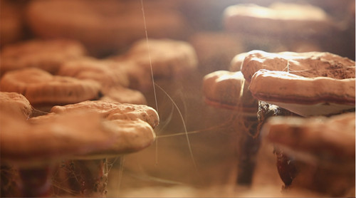 踏進(jìn)基地,掀開薄膜,我們都被眼前的景觀吸引了。一整片的靈芝正在彈射靈芝孢子粉,直徑僅6-8微米的孢子粉,從靈芝菌蓋底部噴射出來,肉眼看上去更像是一縷縷褐色的煙霧,緩緩在空氣中飄蕩。我們現(xiàn)場的人員不由得加快了呼吸的頻率,試圖多吸入一些孢子粉,因為噴射的孢子粉富集了靈芝主要的功效成分-靈芝三萜跟靈芝多糖。無限能有機(jī)靈芝從育苗到種植全過程都不能使用農(nóng)藥、化肥及其他生長調(diào)節(jié)劑等化學(xué)物質(zhì),所以正在噴粉的靈芝孢子粉我們可以直接入口品嘗,細(xì)膩如牛奶般絲滑。