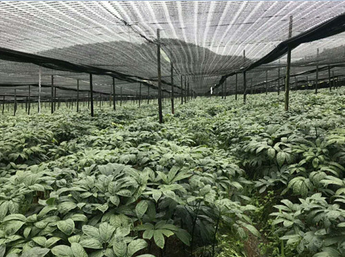 三七種植必須要高海拔、無污染,無限能道地三七對于品質(zhì)的要求更為嚴(yán)苛。10月9日,無限能品質(zhì)見證官一行30多人日夜兼程,驅(qū)車13個小時來到海拔1800多米、沒有污染的高山坡頂,這里一望無垠的三七種植大棚即是無限能三七專供基地。這里山巒連綿起伏,氣候宜人,每一口空氣都能潤入心肺。三七非常矜貴,無限能對三七的要求更高,為了達(dá)到無限能三七質(zhì)量要求,三七生長過程中不能受蟲害污染,不能噴灑農(nóng)藥,所以宋大哥每天都要在500多畝的三七地里巡視,一旦發(fā)現(xiàn)“患病”的三七苗就要馬上移植,不能把其他健康的三七苗傳染了?!耙荒暌郀€5、6雙軍工鞋”宋大哥爽朗的笑聲一遍遍的在大山回蕩。