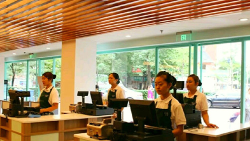 唔哩菜門店扎根社區(qū)、服務(wù)大眾,在室內(nèi)陳列、裝修風格上沿用實用主義與精致品味的融合,堅持傳遞“親手做的才是愛”的品牌理念,著力打造社區(qū)家庭會客室的體驗感?;诖?,唔哩菜各店鋪在風格上保持一貫的清新、溫馨的感覺,以“唔哩菜藍”為視覺基調(diào),區(qū)別于市場眾多超市零售品牌,從視覺、環(huán)境、選材、到各類造型貨架均打造自有的別致個性風格。