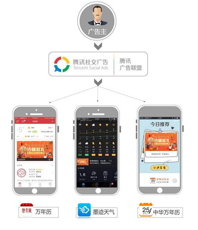 騰訊廣告聯(lián)盟聚集的頭部應(yīng)用流量占比達到75%,包括工具、游戲、影音、娛樂和生活等各大垂類。極端天氣環(huán)境下,天氣類應(yīng)用作為海量流量入口的價值體現(xiàn)更明顯,能夠充分保證廣告曝光量。因此,針對廣告主傳播需求,騰訊廣告聯(lián)盟選擇優(yōu)質(zhì)天氣類應(yīng)用“墨跡天氣”、“萬年歷”和“中華萬年歷”,巧妙銜接起廣告主訴求和用戶潛在需求,最大化聯(lián)動內(nèi)外部流量資源,釋放最大活動聲量。