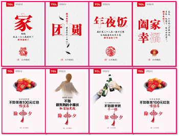 一年來的在外奔波,一年來對子女的牽掛,這些普遍存在的生活寫照,為春節(jié)增添了一份獨有的節(jié)日氛圍。TCL在春節(jié)期間,刻畫了一條情感軌跡,通過品牌的情感主張,牽動著消費者跟隨著TCL走過了一段完整的團圓之旅。