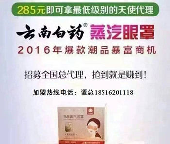 互聯(lián)網(wǎng)時(shí)代,給我們帶來最佳創(chuàng)業(yè)機(jī)會,據(jù)悉,云南白藥合凱微商運(yùn)營中心已經(jīng)通過一款云南白藥泰邦熱敷蒸汽眼罩開啟微商代理之路,后續(xù)將會有幾十款微商專供產(chǎn)品。代理商在幫助客戶低價(jià)買到最優(yōu)質(zhì)的產(chǎn)品的同時(shí),自己還有提成。而其中天使級的微商代理,只需要285元。
