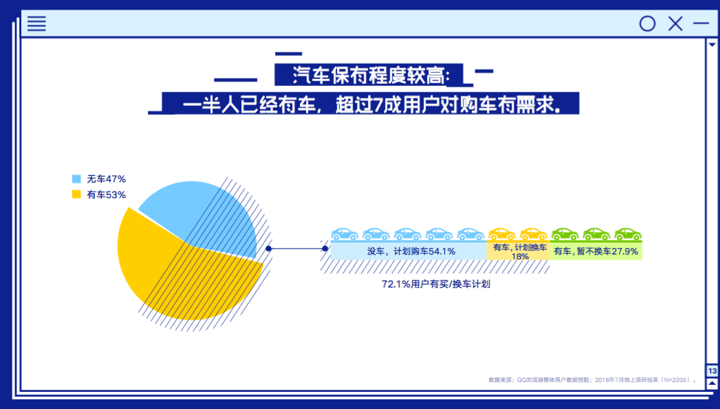 在購買汽車大件商品上,報告顯示這部分人群的消費需求同樣令人不可小覷?!坝虚e青年“中大部分都有購車能力,有車一族占到53%,沒有購車占到47%,而在這部分沒有買車群體中,有購車計劃的占到接近超過半數(shù)54.1%,”有閑階級“中有買或換車計劃的占到72.1%之高,這對于汽車廠商在一線城市限車限號的背景下,下沉渠道走出”鄉(xiāng)鎮(zhèn)包圍城市“的新路線有著不小的啟示。同時,這部分群體對汽車的性能、安全性最為關(guān)注,并且非常善于從資訊中獲取信息對比品牌,汽車保養(yǎng)、新能源、家用型、SUV、奔馳成了他們熱搜的五大關(guān)鍵詞。