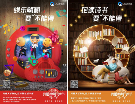 在內(nèi)容的傳達(dá)上,QQ瀏覽器此次興趣營(yíng)銷通過(guò)話題參與和發(fā)布聯(lián)合海報(bào)的形式,緊密貼近品牌理念以及此次興趣活動(dòng)的主題,將QQ瀏覽器的品牌理念和狂歡活動(dòng)的興趣意義傳達(dá)給更多的用戶。