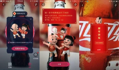 去年12月,在支付寶推出紅包大招“AR實(shí)景紅包”后,“LBS+AR+紅包”的交互方式吸引了眾多品牌的關(guān)注。同時(shí)期,可口可樂(lè)攜手優(yōu)酷,以“就要年在一起”為新春傳播主題,獨(dú)家深度搭載支付寶“AR實(shí)景紅包”全新產(chǎn)品,讓億萬(wàn)用戶在春節(jié)時(shí)刻點(diǎn)對(duì)點(diǎn)連接到可口可樂(lè)產(chǎn)品。值得一提的是,參與掃“福娃”的活動(dòng)用戶中有55%是90后年輕人,充分彰顯了可口可樂(lè)活動(dòng)在年輕群體中的影響力。