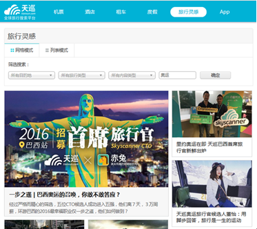 在里約奧運(yùn)會(huì)開(kāi)幕之前,天巡聯(lián)手赤兔共同發(fā)起了“全世界最幸福的職業(yè)”的招募活動(dòng),共同尋找“天巡巴西首席旅行官”,該職位最核心的工作就是在奧運(yùn)會(huì)期間前往巴西里約,去體驗(yàn)巴西的美景、美人與美食。活動(dòng)上線第一周,天巡網(wǎng)站及App活躍用戶(hù)量突增55%(GA數(shù)據(jù),6.20-7.31同比去年活躍用戶(hù)),從百度指數(shù)的表現(xiàn)看,天巡同步品牌詞增長(zhǎng)了514%(同比數(shù)據(jù))。