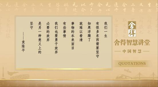 從“人生智慧”上升到 “中國智慧”,全新理念升級是《舍得智慧講堂(第二季)》最顯著的不同。按照鳳凰網(wǎng)制作團隊的理解,“舍得”形成于歷史,脫胎于當(dāng)下,著眼于未來的,最終的目標(biāo)是共商、共建與共享。這與“中國智慧”的核心不謀而合。所以,在這個時代大背景下,鳳凰網(wǎng)把“中國智慧”這一標(biāo)簽與舍得進行了關(guān)聯(lián)。