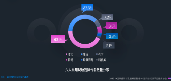 ??高收入、高學歷用戶的增長,為短視頻知識消費市場帶來更大的營銷價值,年輕用戶“為知識付費”成為當下潮流。通過六大知識類短視頻傳播數(shù)據(jù)對比,科普類的創(chuàng)作者平均粉絲數(shù)高達385,227,平均播放量達358,592,平均點贊量11,718。“左手才藝、右手生活”已經(jīng)成為短視頻用戶寓教于樂的主流選擇,快手自然也不會缺席。快手在2019年的扶持政策中,將“知識付費”板塊列入重點扶持目標,預計將超過20萬個賬戶衍生。