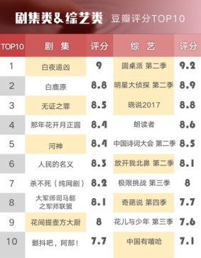 *劇集、綜藝類豆瓣評(píng)分TOP10