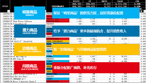 另一方面,還需要針對產(chǎn)品進(jìn)行優(yōu)化。通過打通產(chǎn)品銷售數(shù)據(jù)與用戶訪問數(shù)據(jù),建立產(chǎn)品質(zhì)量評估體系,并根據(jù)不同類型商品給出針對性策略建議,指導(dǎo)產(chǎn)品的優(yōu)化。 另外,基于用戶產(chǎn)品瀏覽偏好,進(jìn)行產(chǎn)品關(guān)聯(lián)推薦,提升平臺的整體轉(zhuǎn)化率。