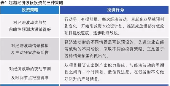 但總體來看,不局限于某一階段,超越經(jīng)濟(jì)周期規(guī)劃投資,優(yōu)選投資項目,優(yōu)化投資組合,優(yōu)先價值投資的企業(yè),都安全度過了經(jīng)濟(jì)波動的低谷期,迎來了下一輪經(jīng)濟(jì)的更大發(fā)展。
