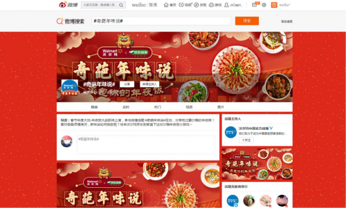 創(chuàng)意營銷的核心切入是產(chǎn)品,在沃爾瑪這次年貨節(jié)營銷中,沃爾瑪-京東到家抓住消費(fèi)者的實(shí)際生活需求,使用了奇葩的切入點(diǎn)來說年味,在微博發(fā)起了一場#奇葩年味說#話題,網(wǎng)友可以參與“說說你吃過最沙雕的年夜菜”話題互動(dòng),同時(shí)也可以上微博搜索關(guān)鍵詞“新年”“沃爾瑪”,加入到主話題討論中來。