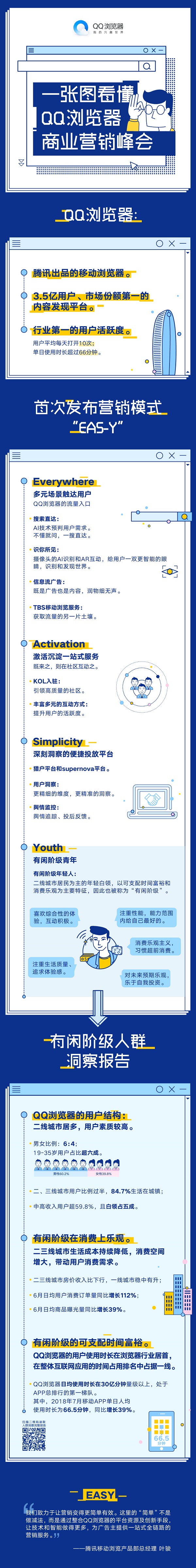 在技術(shù)成熟越發(fā)迅猛的今天,營銷行業(yè)都想抓住時機(jī),以最快的速度學(xué)習(xí)并應(yīng)用到實踐中。面對用戶對營銷信息的敏感度越來越高和營銷模式的同質(zhì)化削弱品牌營銷的效率的環(huán)境下,讓用戶獲取信息更有趣,以及讓企業(yè)信息更有效的傳達(dá)就顯得尤為重要。那么,致力讓“營銷變得更為簡單”的QQ瀏覽器又是怎么做到的呢?下面,一張圖帶你看懂QQ瀏覽器“EASY”模式下的簡單營銷。