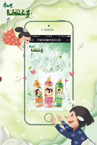 為了讓情感的傳遞更加豐富立體,康師傅茉莉與QQ音樂跨“介”合作,用音樂傳遞心聲,推出康師傅茉莉音樂告白瓶,QQ音樂AR掃描瓶身即可開啟花式告白之旅??祹煾弟岳蚪柚魳菲脚_(tái)QQ音樂和全民K歌等平臺(tái)優(yōu)勢,讓用戶自主生成屬于自己的告白視頻,傳遞用戶對親情、愛情和友情的溫度,無形中增強(qiáng)了用戶粘度與歸屬感。
